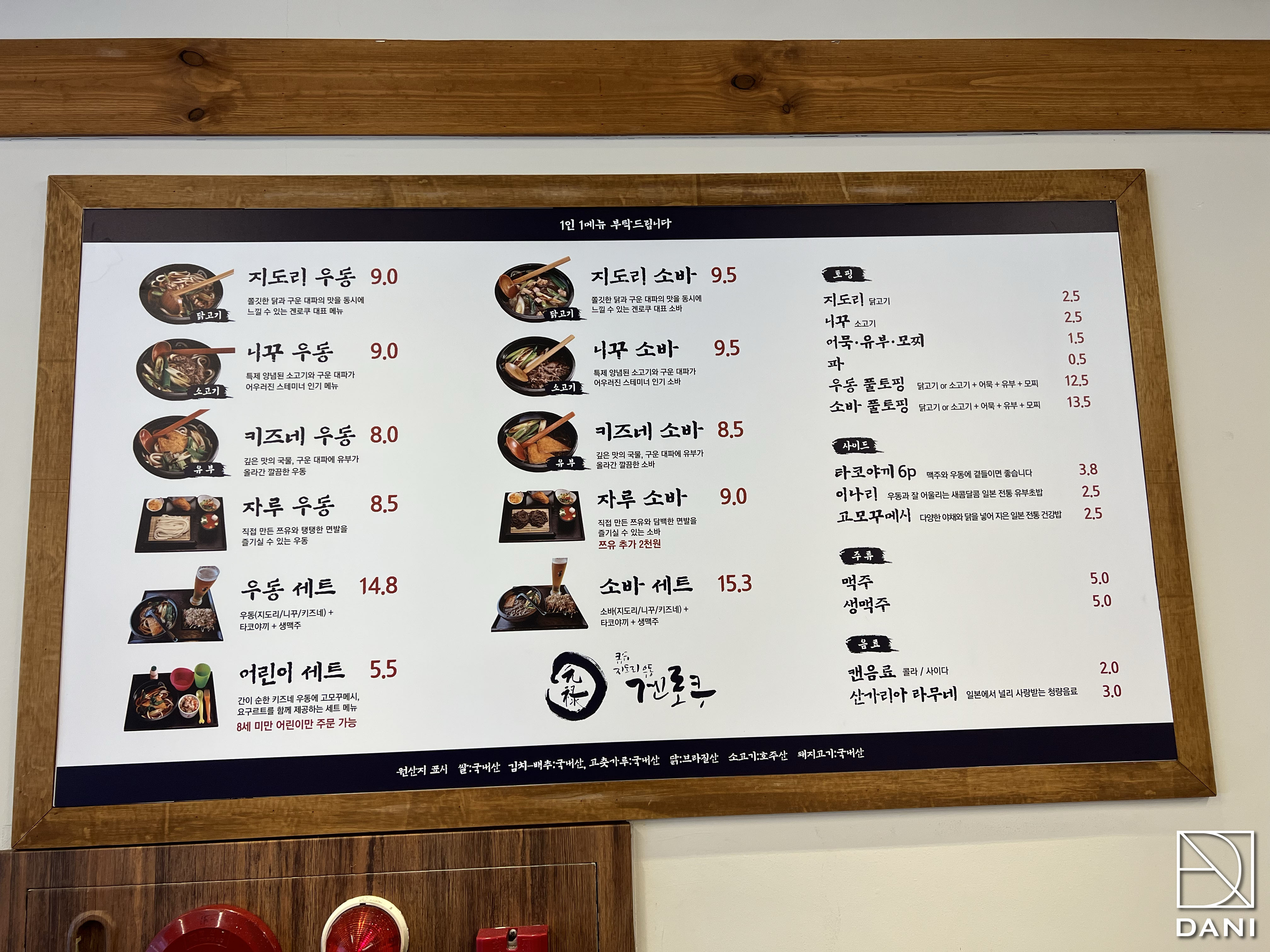 벽면에 메뉴판이 붙어있고,
