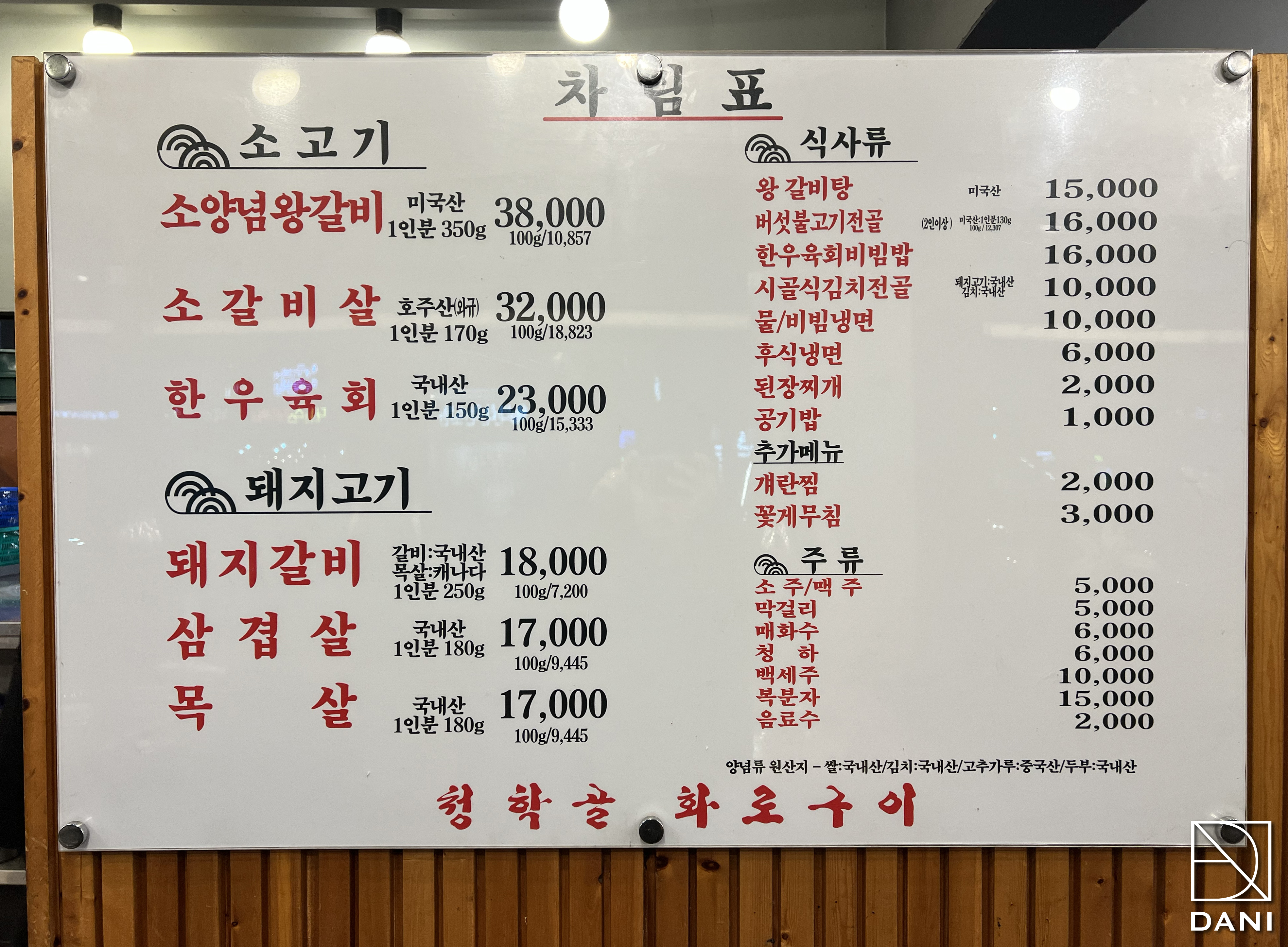 메뉴판은 벽면에 붙어있었어요!