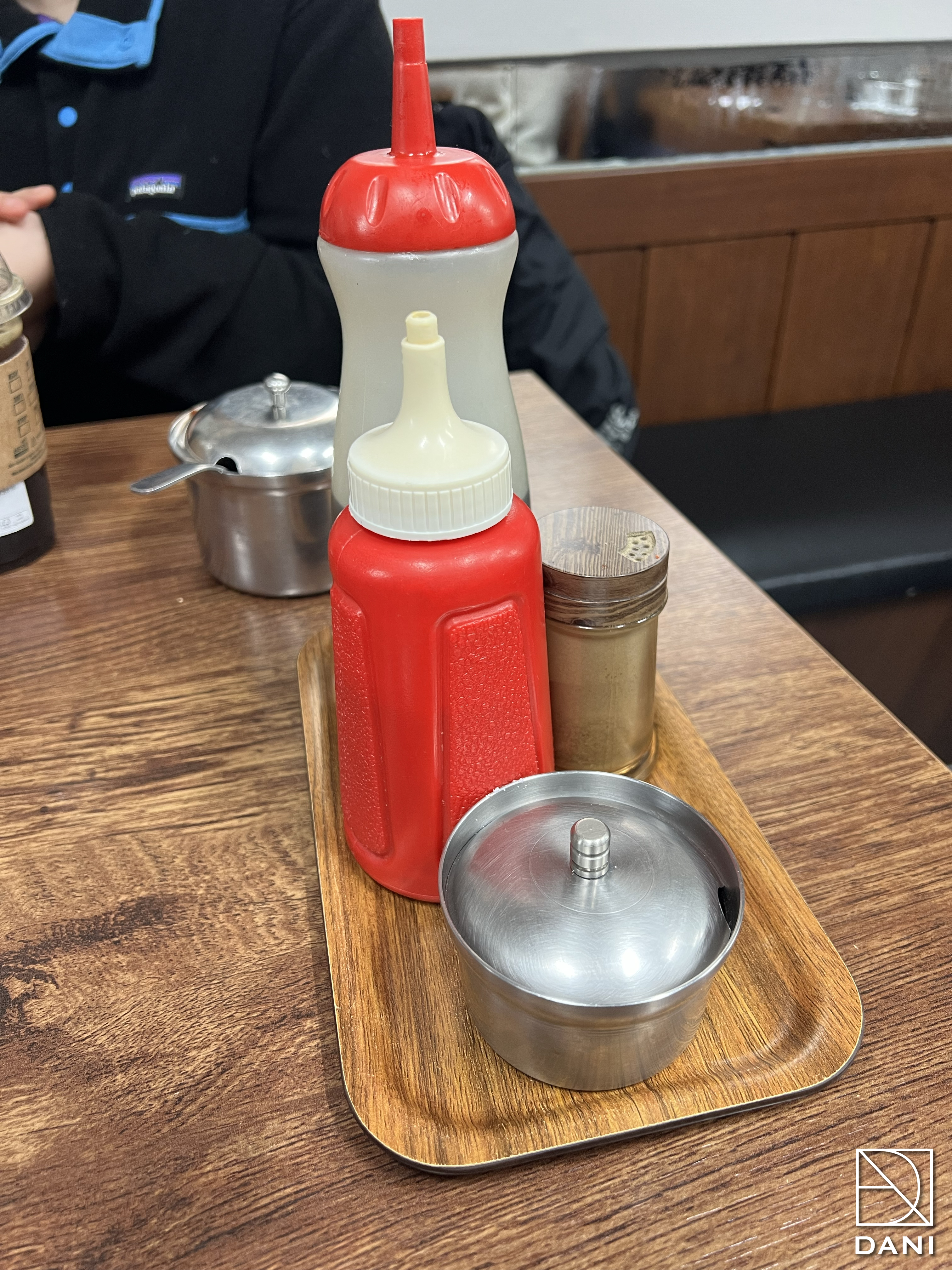 테이블에 소스들이 놓여있어요~